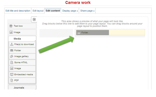 This next part is where you start to add content to your page. You can add text, files, images, diary/blog entries, CV information, embed social media, links - the list is endless!